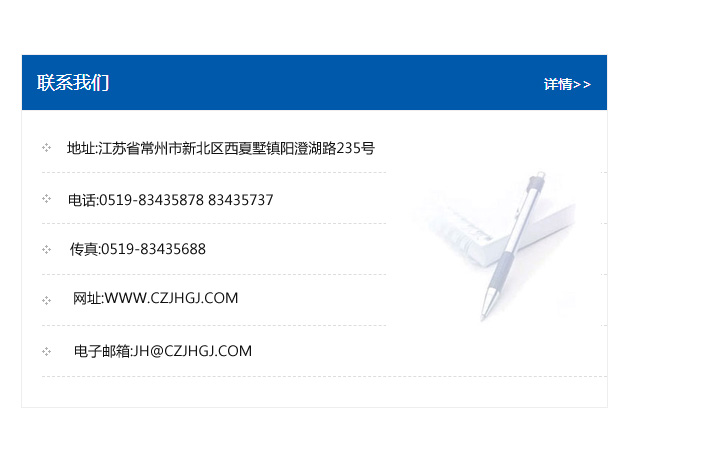 地址:常州市新北區友邦商務大廈1幢16、17層  電話:0519-85101652  傳真:0519-85112595  郵編:213022  網址:www_cz-jiayue_cn.52cyt.com  郵箱:xiajifengaa@163.com